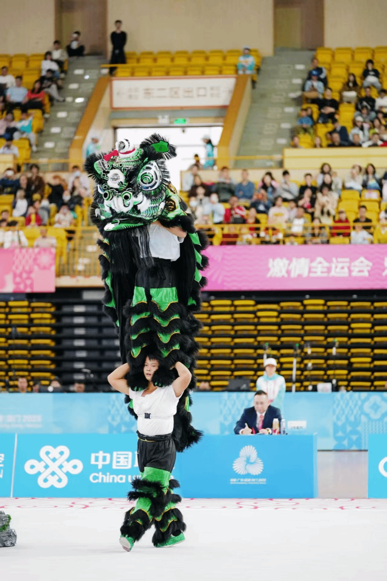 李勇哲同学自幼学习传统舞狮技艺,曾获全国青少年舞龙舞狮比赛南狮传统项目冠军。此次他应陕西省代表团邀请出战全运会这一国内最高水平的综合性赛事,在赛场上以刚劲有力、干净利落的动作,灵动而富有神韵的演绎,淋漓尽致地展现了南狮威武灵动、形神兼备的艺术特色,既弘扬了中华民族优秀传统民俗文化的独特魅力,也体现出新时代青年学子顽强拼搏、昂扬向上的精神风貌,最终在全国顶级赛事的舞台上绽放出了耀眼的光芒。(交通运营服务系 供稿)