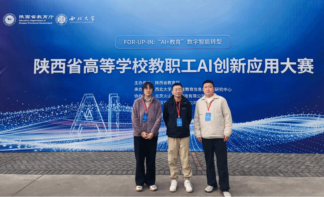 近日,由省教育厅主办、西北大学(陕西省教育信息化发展研究中心)承办的 2025 年陕西省高等学校教职工AI创新应用大赛在西北大学长安校区落幕。我校数字经济与数字技术系樊超、刘兴鹏、韩雪儿三位教师组成的团队以其研发的智能体“如意”在AI+管理赛道荣获三等奖,展现了我校教职工在“人工智能+教育”领域的创新实践能力。
