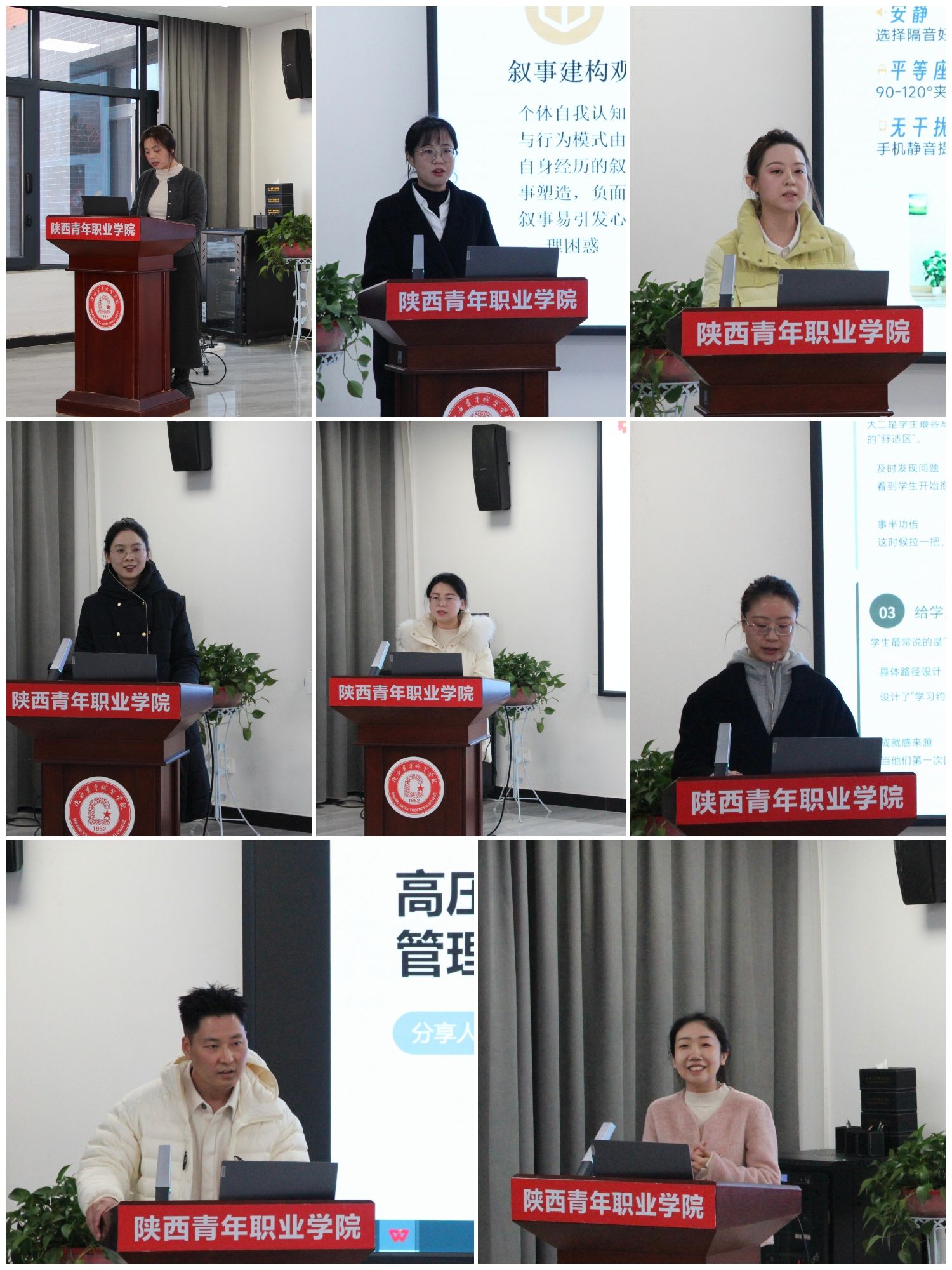 在本次训练营首设的“赋能分享”特色环节中,韩倩阐述了点亮学生心灯的感悟;任蕊介绍了叙事疗法在谈心谈话中的应用;李钰总结了征兵宣传工作的有效方法;郝芫颉讲解了职业生涯规划的具体流程与工具;贾小芬交流了少数民族学生工作的心得;王昕彤分享了引导学生平衡恋爱与学业的育人实践;胡艳艳探讨了大学生社会实践的组织经验;文化传媒系辅导员刘泽原分享了高压工作下情绪管理与能量补给的独到见解。在“案例分析”环节,7位选手现场抽题、限时作答,分析问题本质,提出思路措施。在“谈心谈话”环节,辅导员与学生现场互动,要求在十分钟内迅速把握问题核心,通过共情、引导、解惑展现沟通艺术与教育智慧。