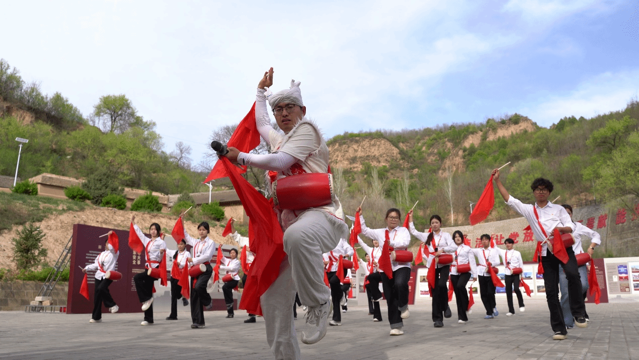在为人民服务讲话台前,全体师生齐声诵读《为人民服务》,铮铮誓言响彻山谷,张思德精神深深烙印在每一位学子心中。沉浸式安塞腰鼓非遗文化实践体验中,同学们在豪迈鼓点中感受陕北民俗魅力。在观《再回延安》情景演出中,同学们在光影间重温革命岁月,全场齐唱《歌唱祖国》,让信仰与传承在旋律中深度共鸣。