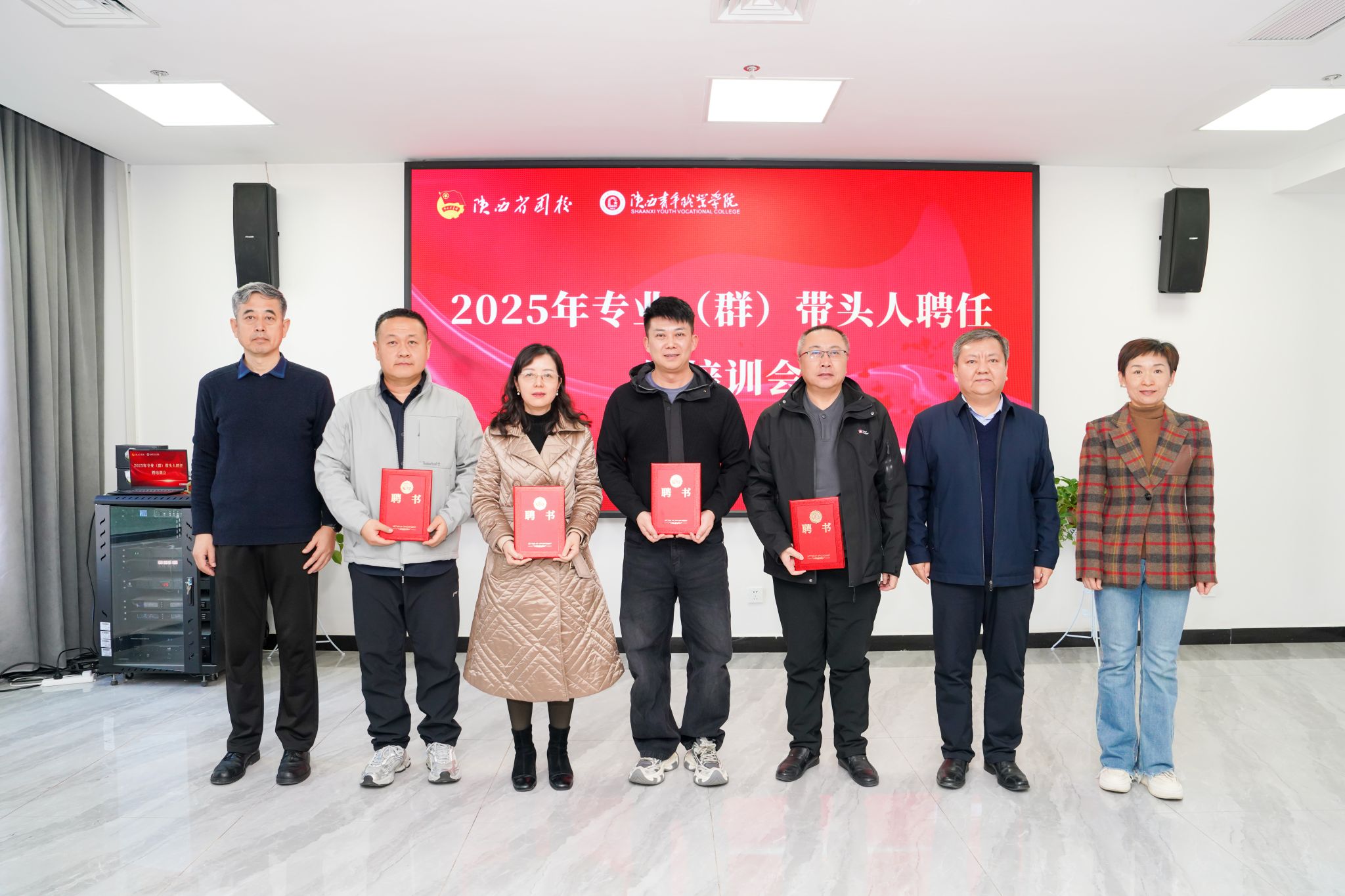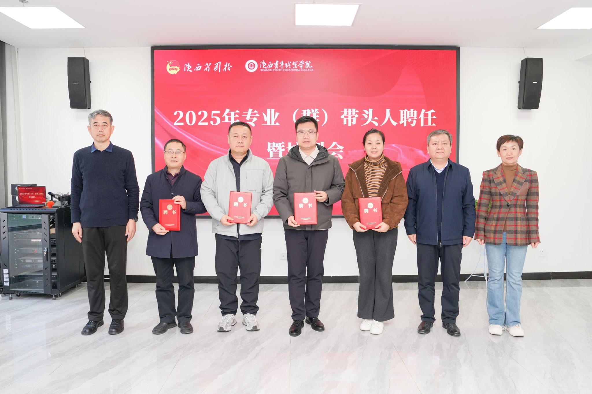 会议组织学习了《陕西青年职业学院专业(群) 带头人选聘管理办法(修订)》。韩凯军宣读学校专业(群)带头人聘任文件,14名教师被聘为专业(群)带头人。校领导为专业(群)带头人颁发聘书。
